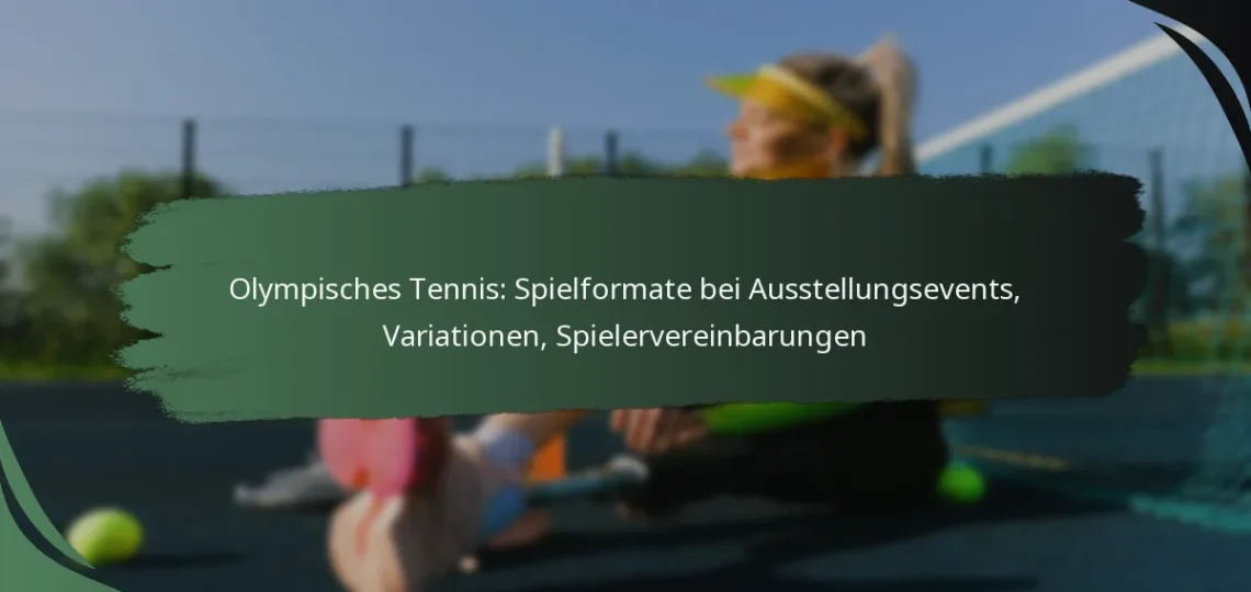 Olympische Tennis-Ausstellungsevents bieten eine Vielzahl von Spielformaten, die darauf abzielen, das Zuschauerengagement zu erhöhen und die Fähigkeiten der Spieler zu präsentieren. Diese Formate, zu denen Best-of-Three-Sätze und Mixed-Doppel gehören, priorisieren Unterhaltung über strenge Wettbewerbsbedingungen und ermöglichen flexible Regeln sowie einzigartige Strukturen. Darüber hinaus spielen Spielervereinbarungen eine entscheidende Rolle bei diesen Veranstaltungen, da sie die Teilnahme durch vertragliche Verpflichtungen und Sponsorenvereinbarungen beeinflussen.