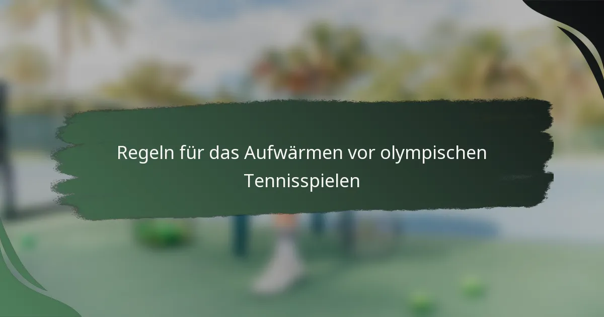 Die offiziellen Aufwärmvorschriften für olympische Tennis-Matches geben den Spielern eine festgelegte Zeit, um sich auf den Wettkampf vorzubereiten. Dieser Zeitraum ist entscheidend für die Athleten, um sich physisch anzupassen und die Platzbedingungen zu beurteilen, was sich in den Zeitvorgaben und Protokollen von anderen Turnieren unterscheidet. Das Aufwärmen dauert typischerweise 20 bis 30 Minuten und betont strukturierte Richtlinien, um die Leistung zu optimieren und das Verletzungsrisiko zu minimieren.