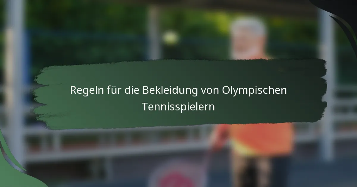 Olympische Tennisspieler sind verpflichtet, spezifische Bekleidungsregeln zu befolgen, die von der International Tennis Federation (ITF) festgelegt wurden, um ein einheitliches und professionelles Erscheinungsbild auf dem Platz zu gewährleisten. Diese Vorschriften umfassen Aspekte wie Uniformfarben, Platzierung von Logos und Sponsorenbeschränkungen, wobei die Einhaltung während der Wettbewerbe überprüft wird. Im Laufe der Zeit haben sich diese Regeln weiterentwickelt, um eine größere persönliche Ausdrucksweise zu ermöglichen, während dennoch Standards für Professionalität und Bescheidenheit gewahrt bleiben.